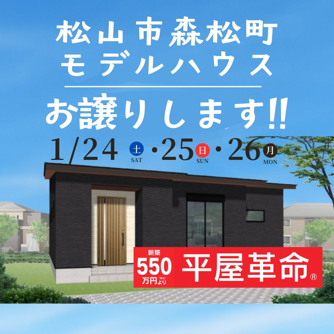 【松山市清水町】モデルハウス見学会!(1/24~26)※松山店
