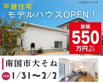 【南国市大そね】モデルハウスOPEN!(1/24~26)