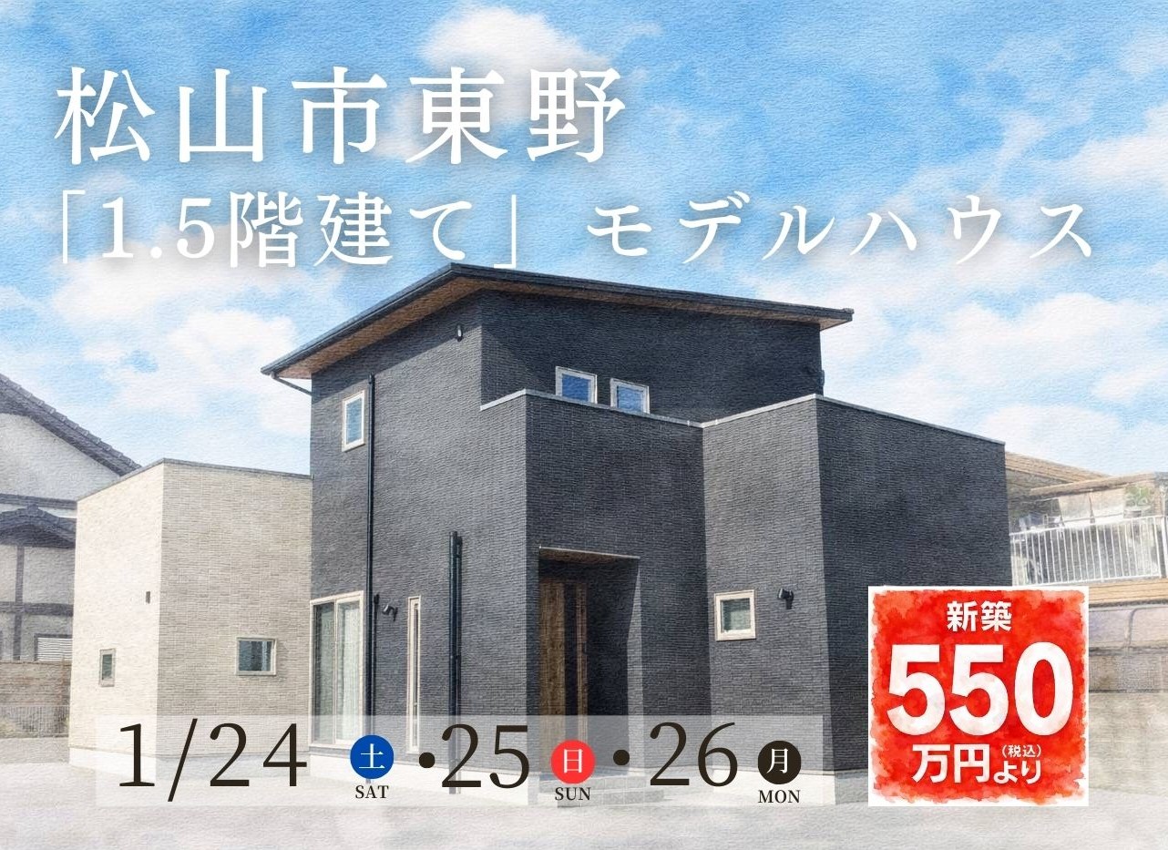 【松山市古川西】「1.5階建て」モデルハウスOPEN!(1/24~26)※松山本店
