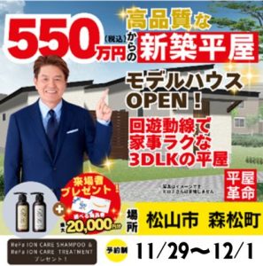 最終開催♬西垣生モデルハウス見学会【11/8~11/10】(松山店)