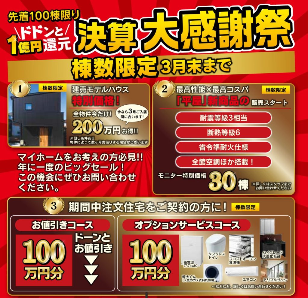 選べる商品券 最大30,000円分!【ご予約の上ご来場で5,000円、WEB事前アンケートにすべてご回答で5,000円、2回目のご面談時に10,000円、初回ご来場から1か月以内かつ3回連続でのご面談時に10,000円】(※初めてご来場の方でご来場アンケートにすべてご回答いただける方、弊社施工エリア内でお家づくりをご検討の方、ご家族でお越しの方に限ります)
