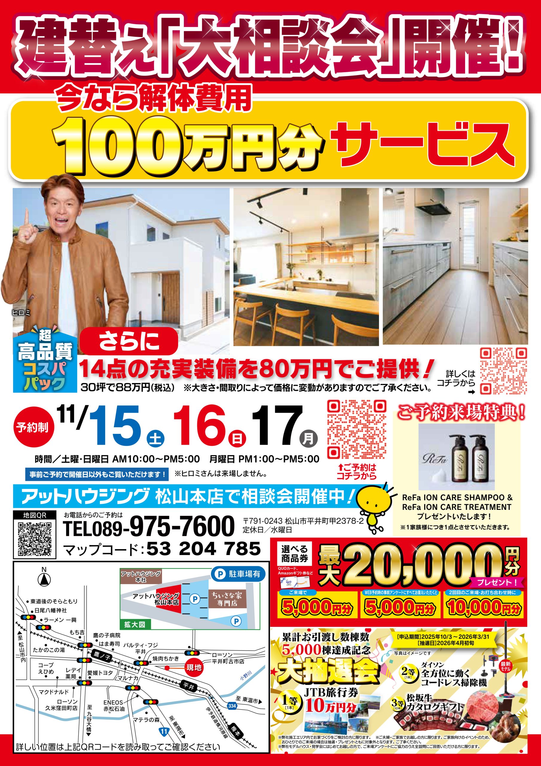 【松山本店】今なら解体費用100万円サービス!住まいの建替え無料相談会開催!(11/15~17)