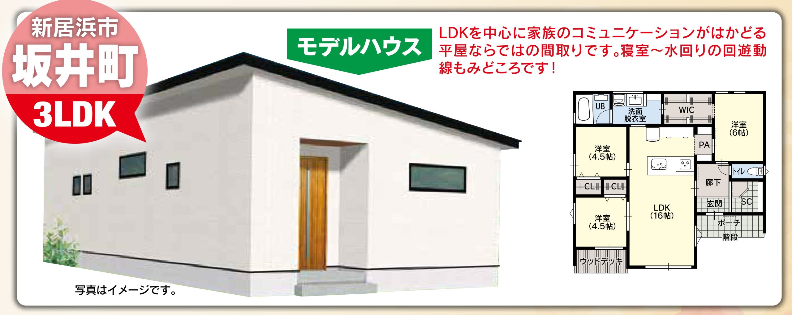 インナーガレージ&ウッドデッキがある平屋【10/11~10/13見学会開催】(松山店)