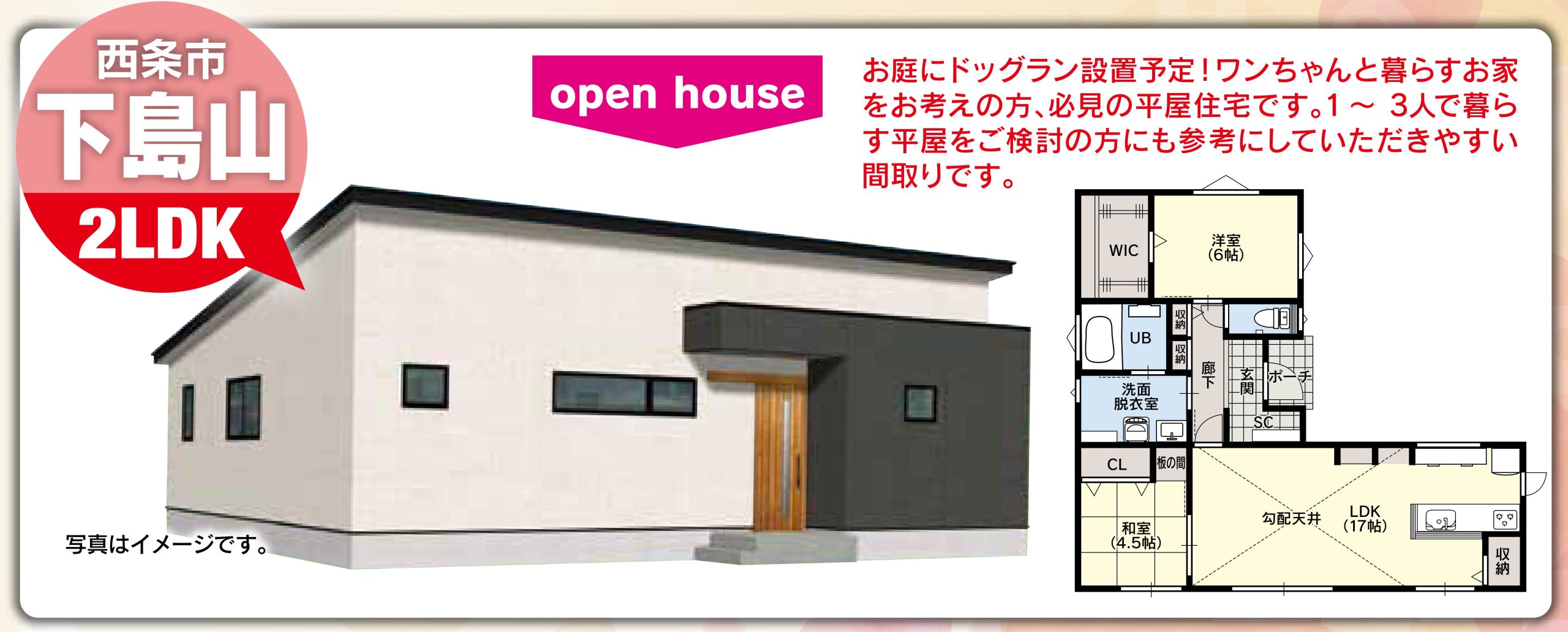 インナーガレージ&ウッドデッキがある平屋【10/11~10/13見学会開催】(松山店)