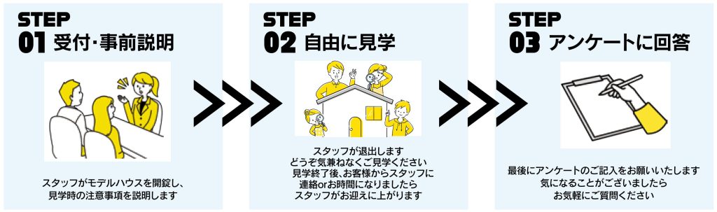 ほったらかしで見学会を行いますので、お一人での見学や短時間の見学もOKです。