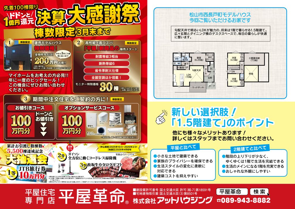 【松山市西長戸】「1.5階建て」新モデルハウスグランドオープン!(2/21~23)※松山店