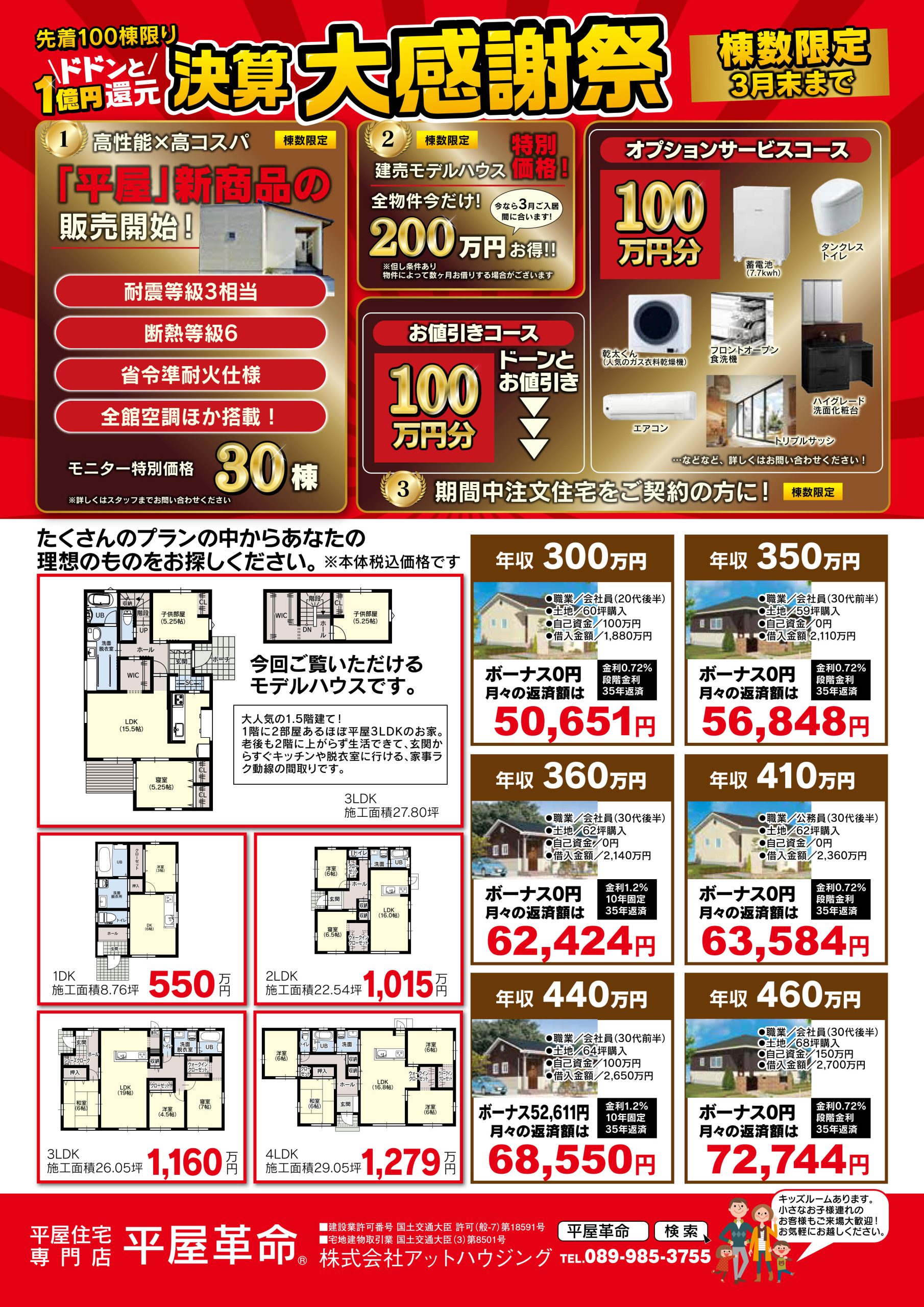 ☏089-985-3755(アットハウジングマサキデッキ店)まで!