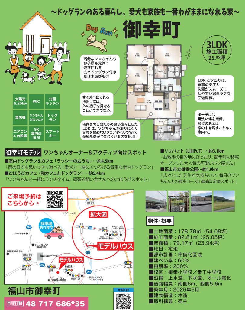 福山市の注目エリア、神辺町湯野と御幸町にて、理想の平屋に出会える特別な3日間!