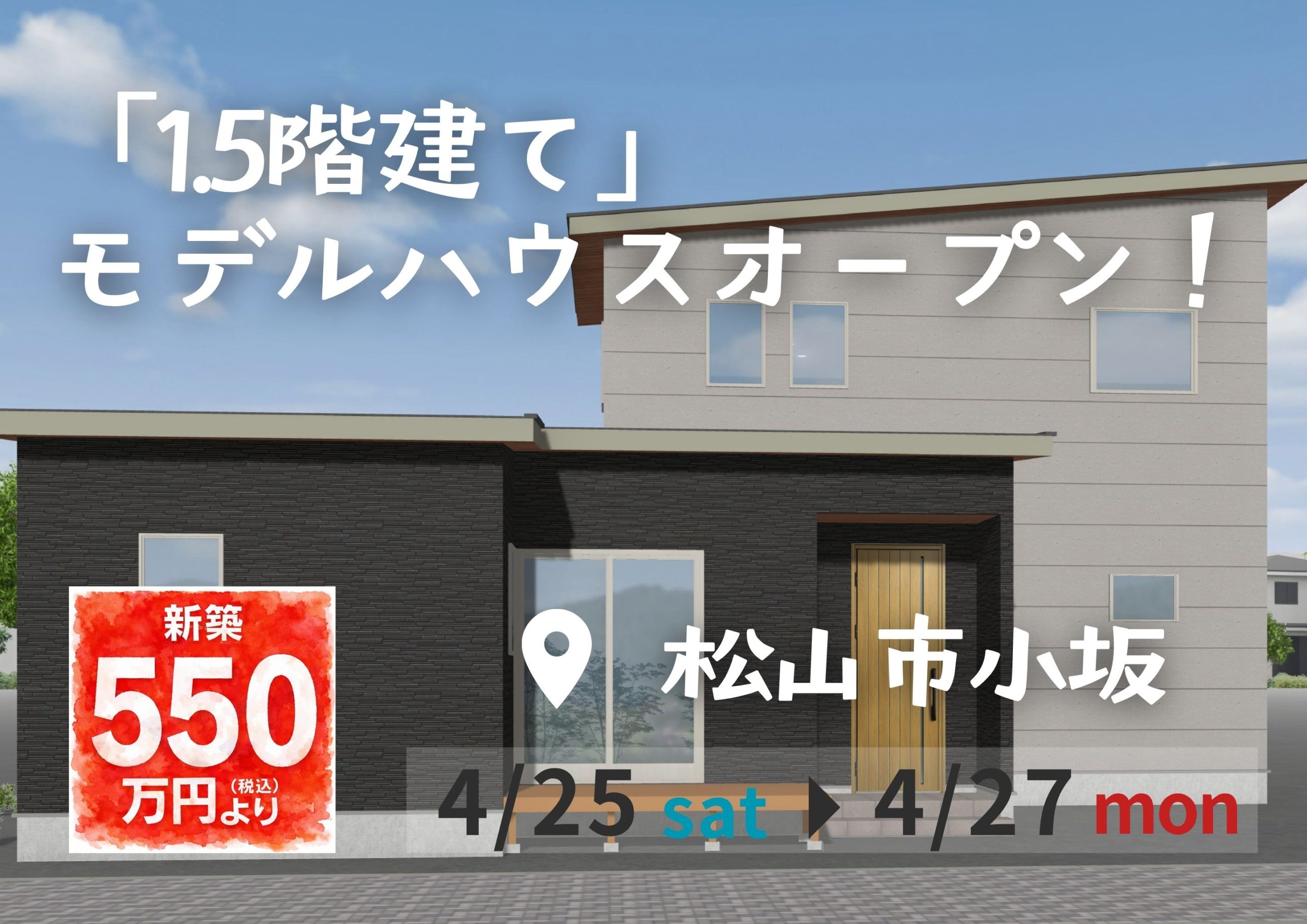 【松山市小坂】「1.5階建て」モデルハウスオープン!(4/25~27)※松山店