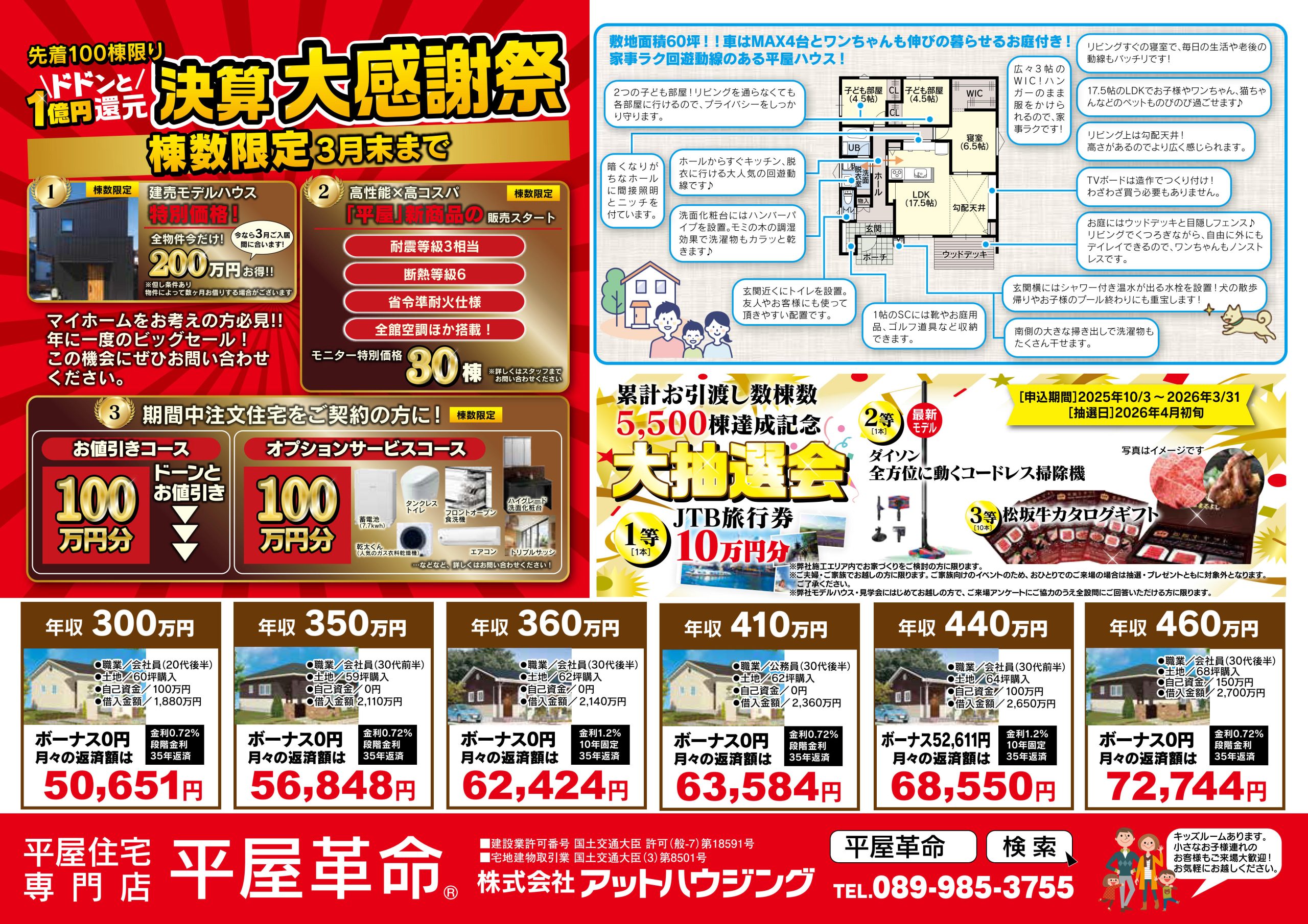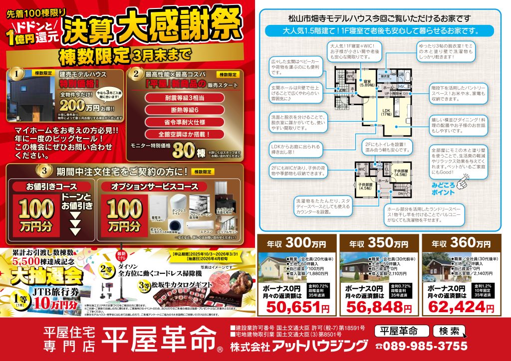 ☏089-985-3755(アットハウジングマサキデッキ店)まで!