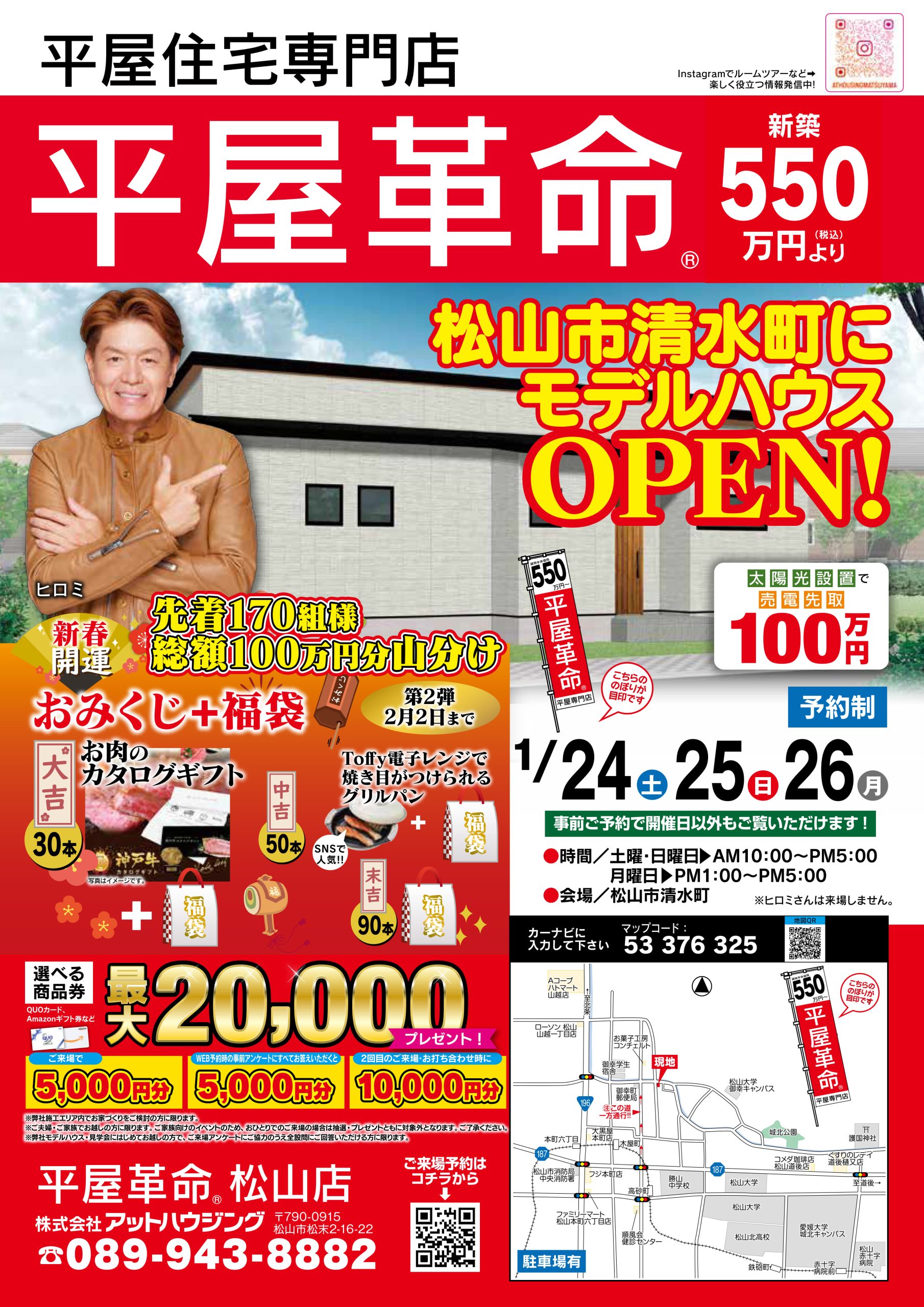 【松山市清水町】モデルハウス見学会!(1/24~26)※松山店