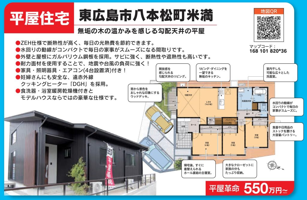 東広島市八本松町米満に、ZEH仕様の高性能な平屋OPEN!