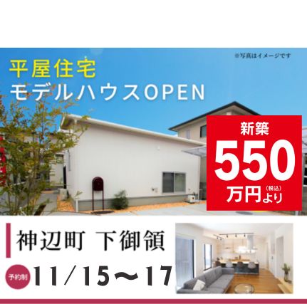 【福山市神辺町下御領】モデルハウスOPEN!(11/15~17)